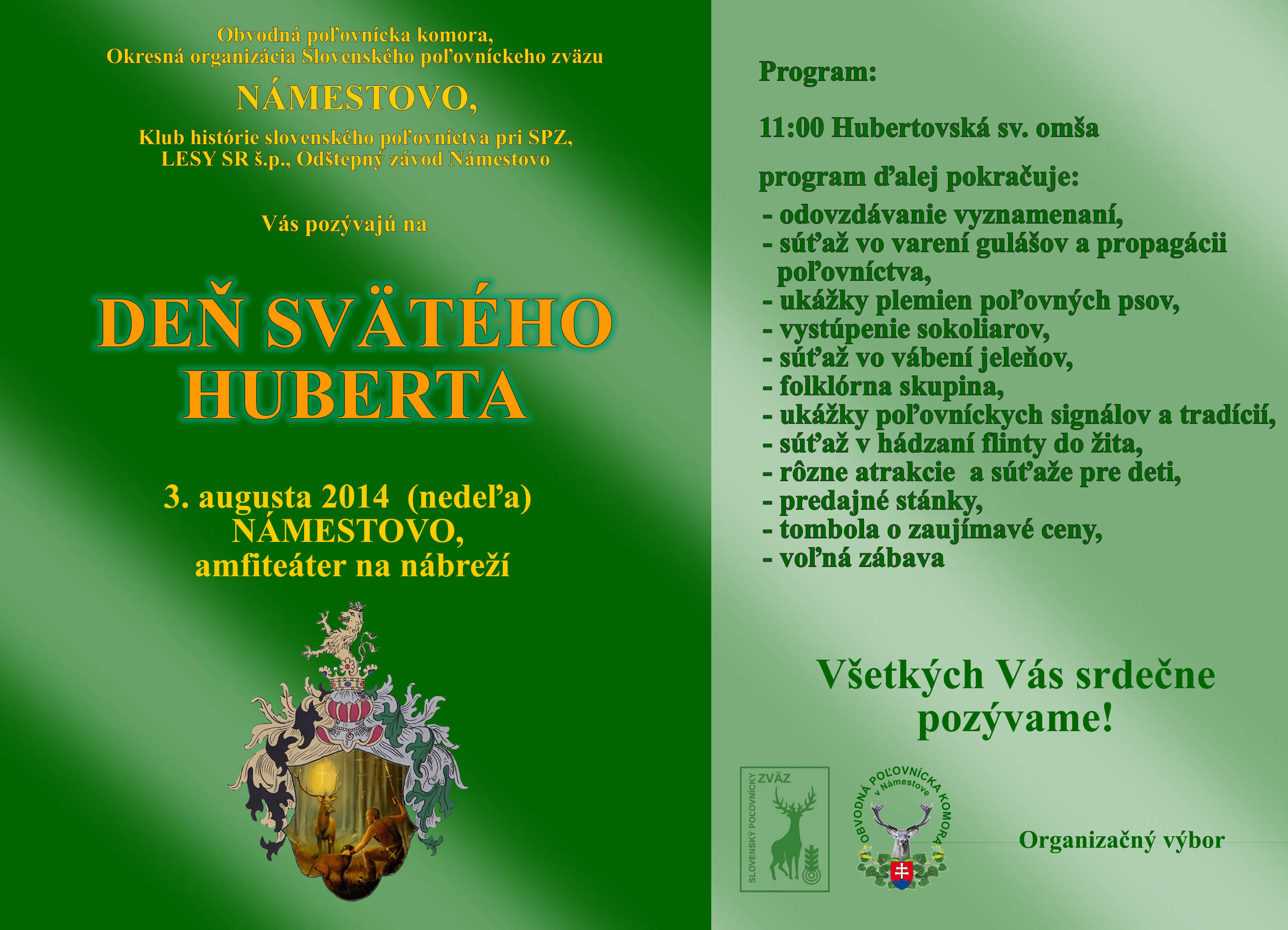 V piatok bola na programe svätohubertská omša v katolíckom kostole v Malackách. Trúbením ju doprevádzalo Lovecké trio Praha a spevom všetci zúčastnení trubači. Krásne prostredie kostola, zamatový zvuk lesníc, spevy a samotný obrad omše bol pre zúčastnených nielen kultúrnym ale určite aj hlbokým duchovným zážitkom.
